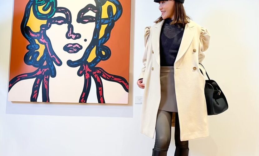 夜は前を開けて、短めのボトムスでメリハリつけました。