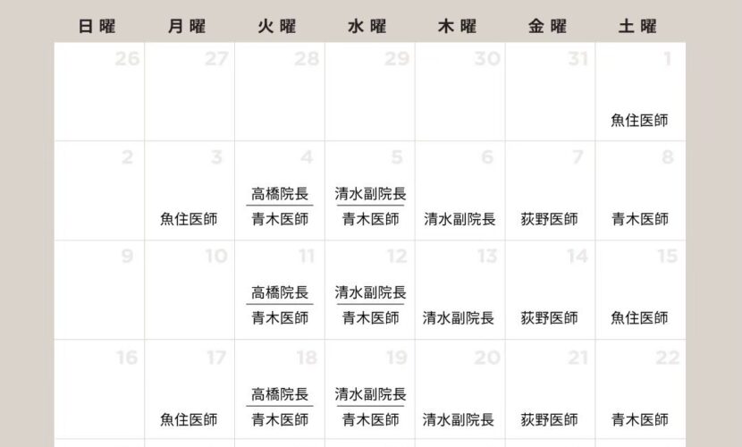 ↑6月のドクター出勤日カレンダー↑