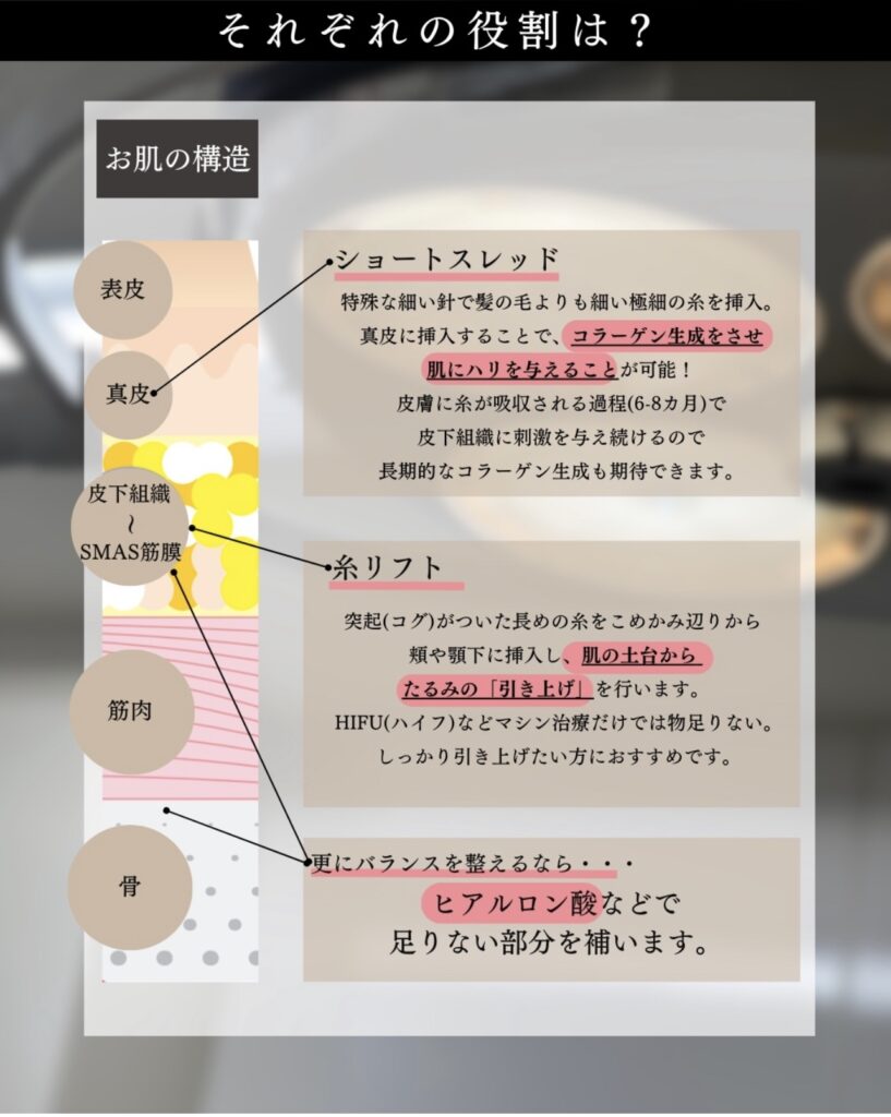 糸、ショートスレッド、ヒアルロン酸には