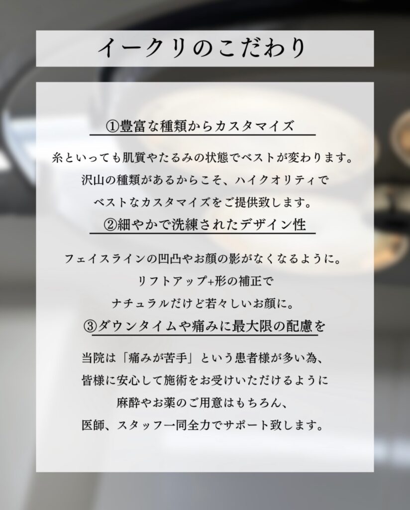 お客様に合わせた糸リフト・ショートスレッドを