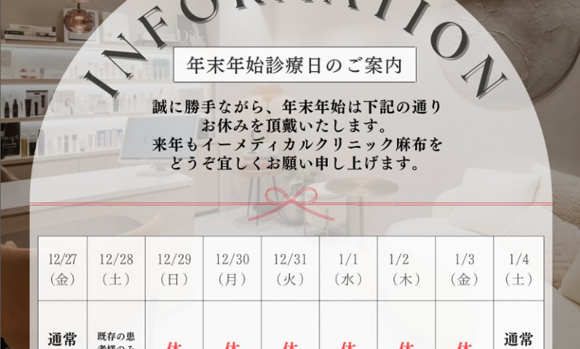 お休みを頂戴し、年始は1/4(土)より診療致します。